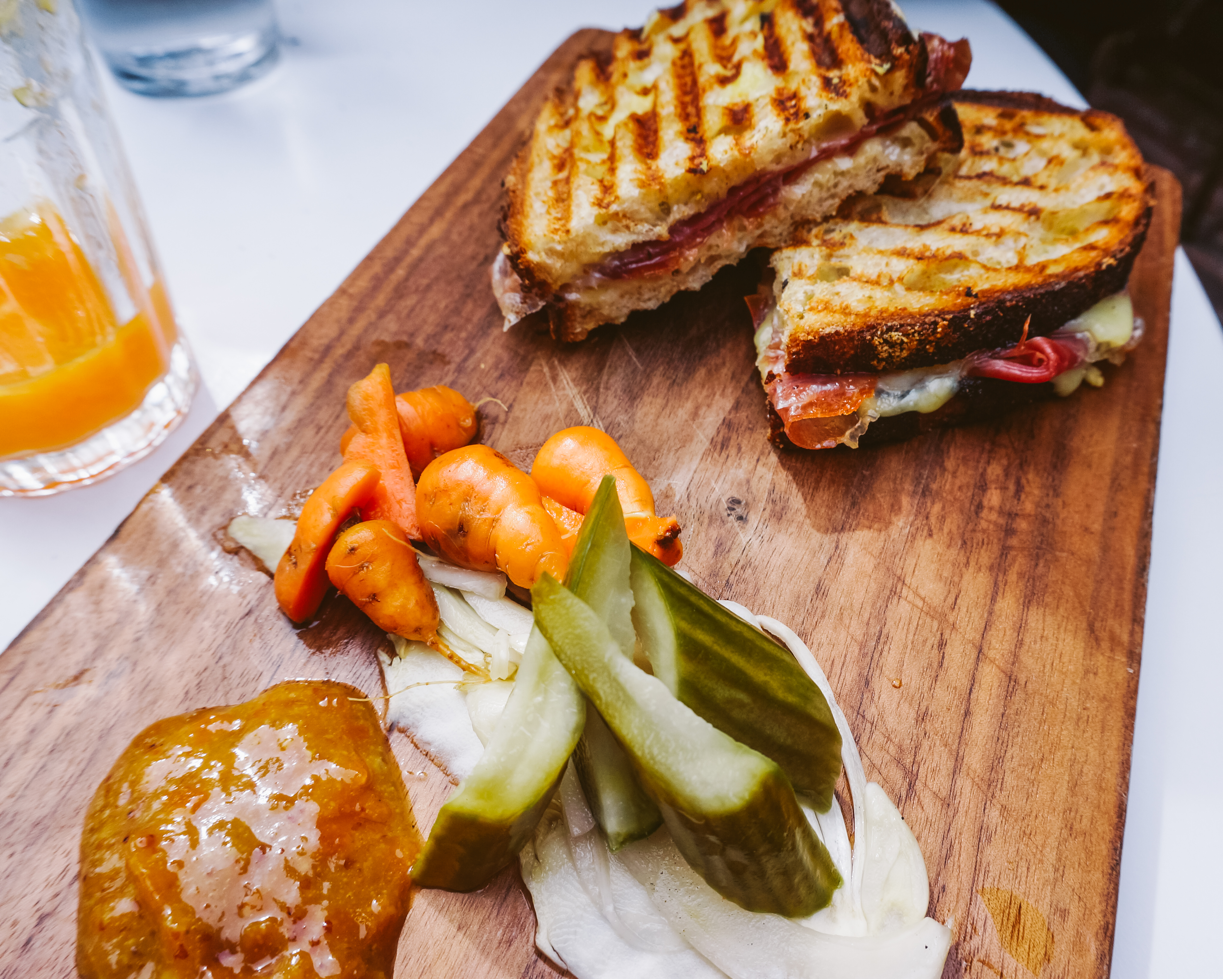Whether for breakfast or for another meal: granola and Greek yogurt with seasonal fruits, Moroccan eggs served with merguez or their excellent paninis.